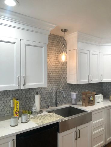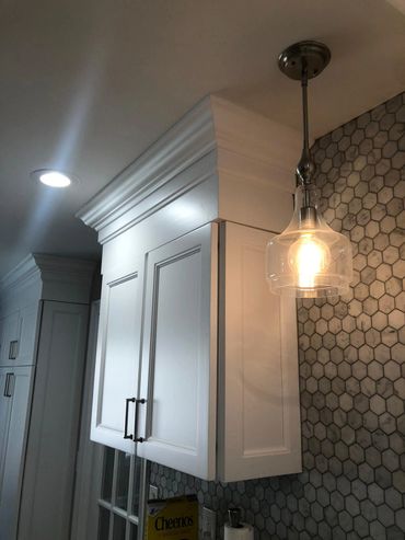 While we were working at the manufacturing other works were at the kitchen other jobs were done in the kitchen. Also was replace crown molding and has installed a new soffit on all the cabinetry.